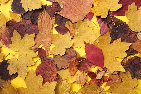 Autumn leaves background. Yellow and red autumn leaves background. top view