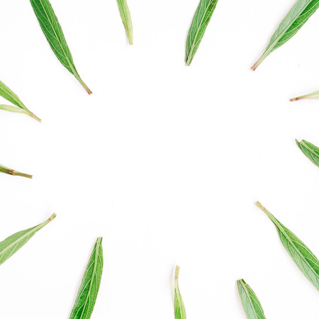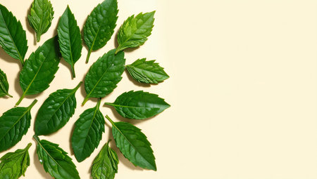 Top view of mint herbs on white background. Minimal raw herb concept design