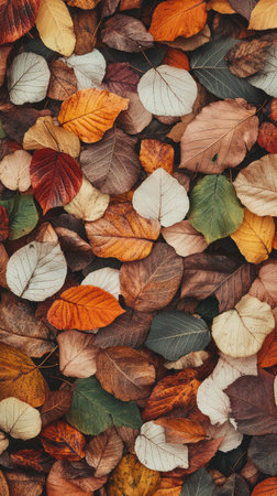 Vibrant autumn leaves covering the ground in rich colors and textures