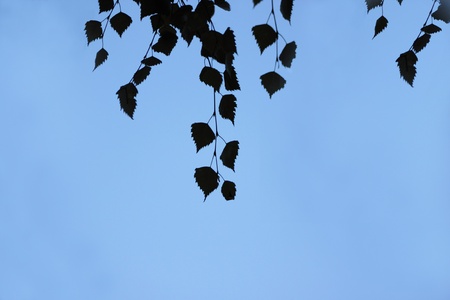 birch leaves on the background of blue sky