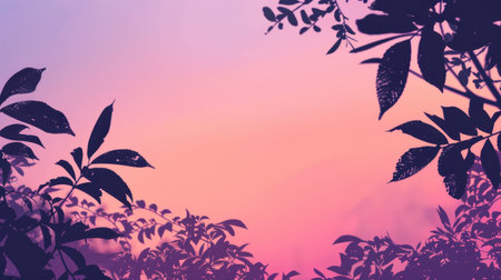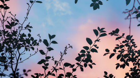 Silhouetted Leaves Against Gradient Pink and Blue Sky Background in Tranquil Nature Scene