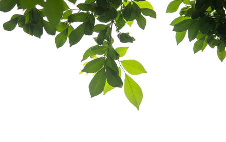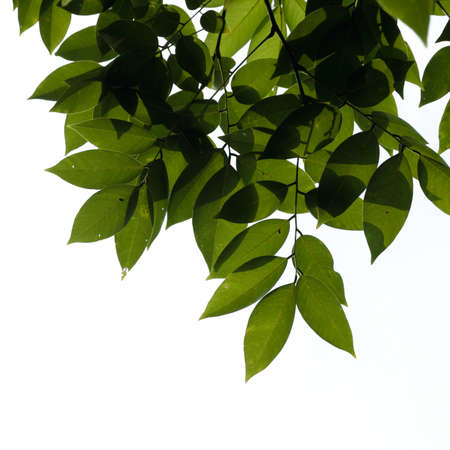 Green leaves isolated on white background with clipping path. Close up.