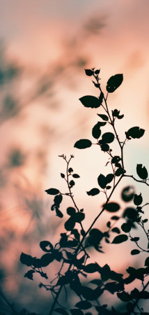 Vibrant Plant Silhouettes Against Gradient Sunset Sky with Colorful Pastel Tones