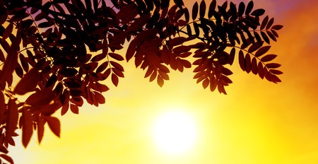 Sunset with leafs and orange sky