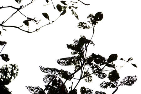 abstract plant background, silhouettes and shadows of leaves in the sun, black and white frame of plants
