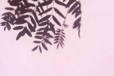 Abstract leaves shadow on pink background. Summer hipster concept. Copy space.