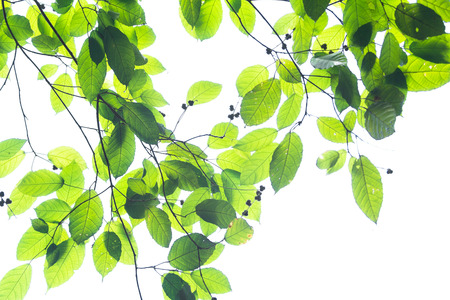Fresh spring green leaf on white background