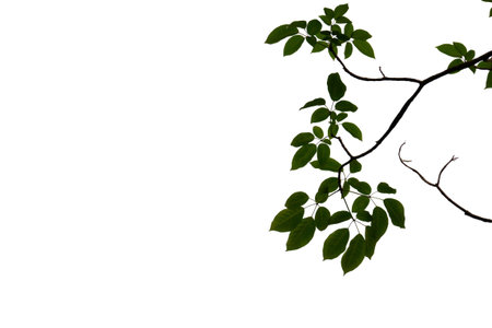 Silhouette tree branch isolated with white background and with clipping path.