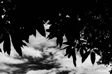 black white leave with sky ,clound background