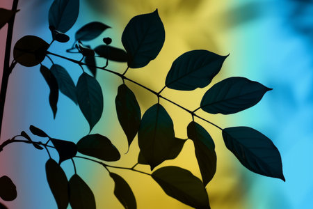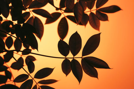 Silhouetted Leaves Against Gradient Background in Tranquil Abstract Nature Scene