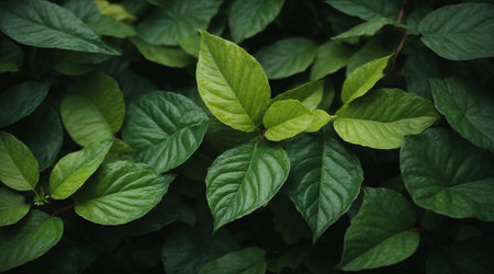 Lush greenery texture with glossy leaves for nature-themed design and decoration