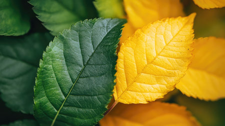 A close up of a bunch of leaves that are green and yellow, AI