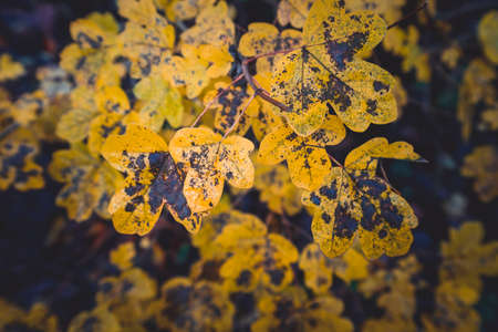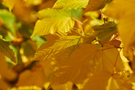 Close up of autumn yellow leaves outdoors