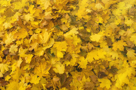Background made of fallen yellow maple leaves
