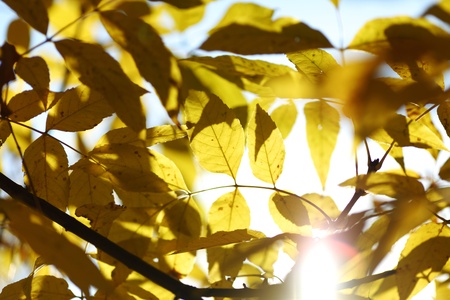 Autumn leaves of a walnut. October, fresh, hazy, golden October, when the light is sweet and heavy