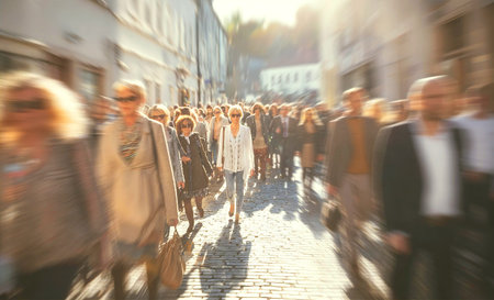 Generative AI, midday population strolling down a busy street