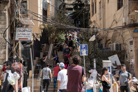 8 8 2020: Lebanese Citizens in Street after the massive explosion in Beirut observing the City Blast destruction