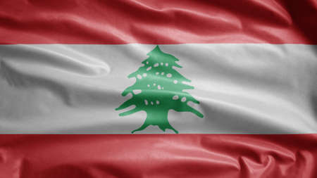 Lebanese flag waving in the wind. Close up of Lebanon banner blowing, soft and smooth silk. Cloth fabric texture ensign background.