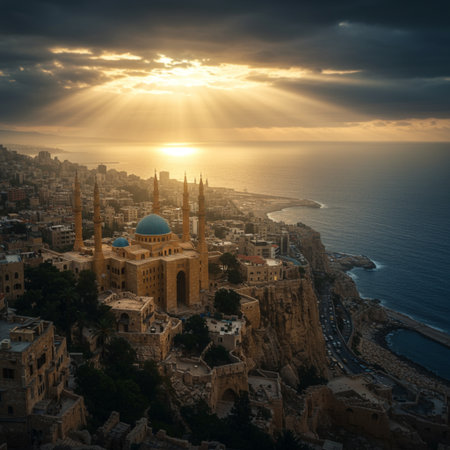 Harissa Our Lady of Lebanon Marian Shrine Pilgrimage Site Saint Paul Basilica Jounieh Landscape at Sunset