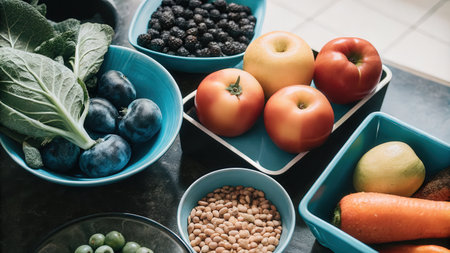 a variety of colorful fruits and vegetables for meal prep, created with generative ai