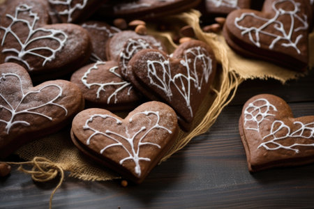 traditional german gingerbread heart cookies for oktoberfest, created with generative ai