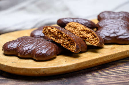 Tasty gingerbread glazed cookies from Torun, Poland close up