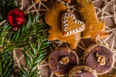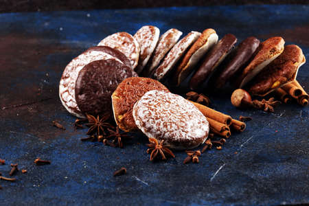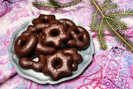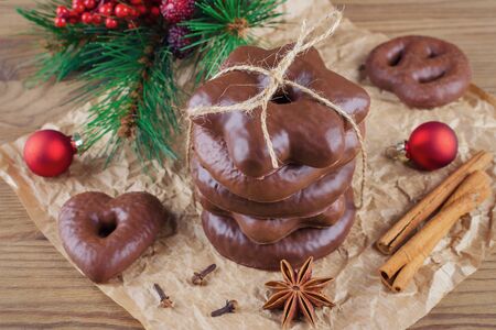 traditional german christmas chocolate cookies lebkuchen with decoration