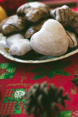 Homemade ginger cookies on the table, symbol of New Year, Christmas