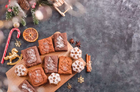 Typical German Gingerbreads such as Lebkuchen and Aachener Printen. christmas cookies with spices.