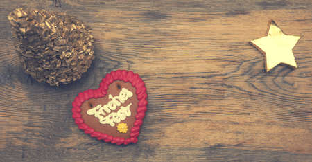 original bavarian christmas gingerbread heart on wood. xmas gingerbread cookie