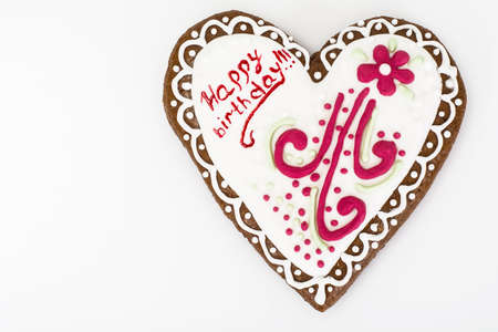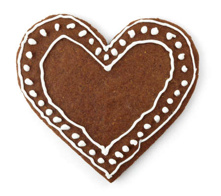Gingerbread heart with white isolated background