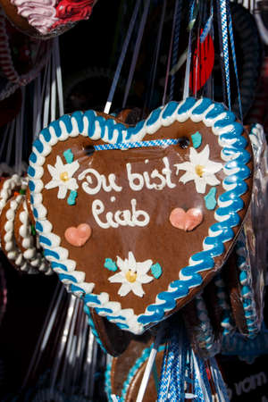 typical souvenir at the oktoberfest in munich - a gingerbread heart - lebkuchenherz