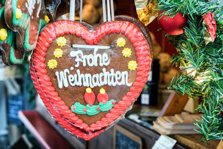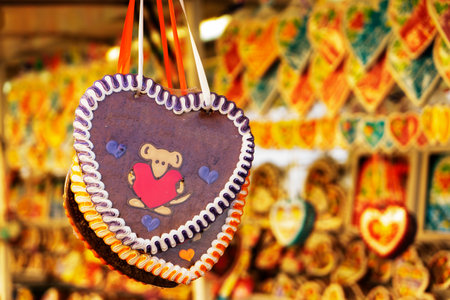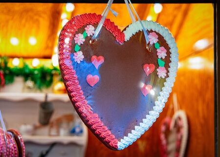 Heart shape Gingerbread cookie in Christmas market in Germany