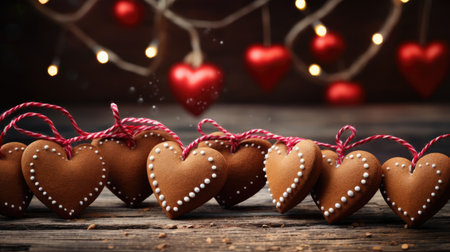 essence of Christmas with gingerbread hearts adorned with red ribbon, forming a delightful garland. Perfect for holiday-themed designs