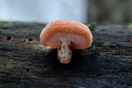 Nice texture of wild mushroom hat placed on the wood