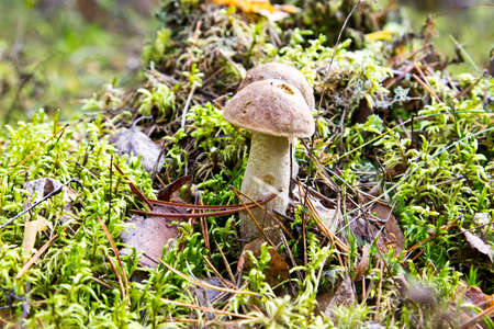 Mushroom boletus grows in the forest in early autumn
