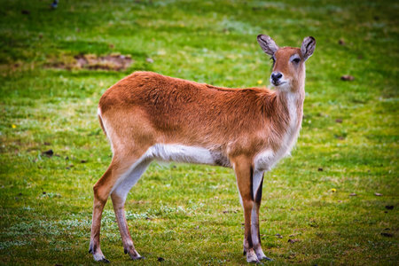 Male red lechwe antelope (Kobus leche) in natural environment, southern Africa