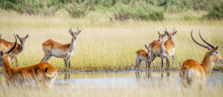 Herd of Lechwe starring at the camera in the Okavango delta, Botswana.