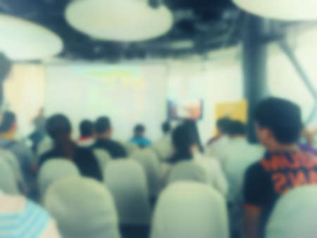 Vintage style abstract blurred . people lecture in seminar room