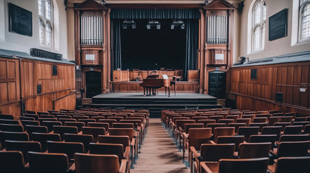 A stunning auditorium showcasing a blend of classic architecture and modern facilities, perfect for conferences, presentations, or cultural events, offering a unique ambiance.