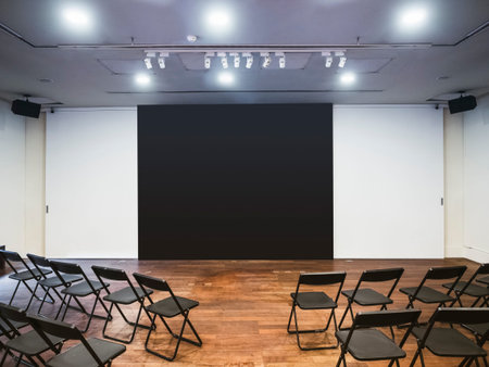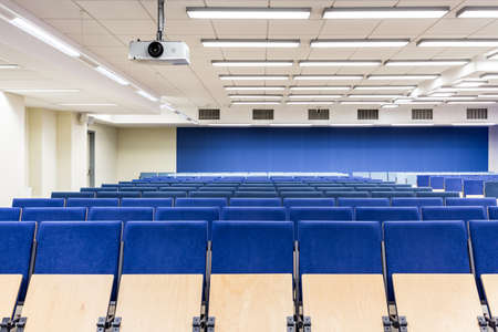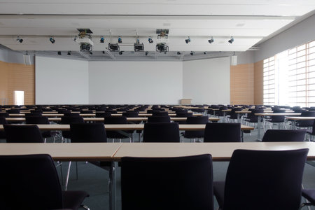 Empty school assembly hall for meetings and presentations, school education.