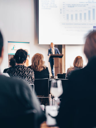 Speaker Giving a Talk at Business Meeting. Audience in the conference hall. Business and Entrepreneurship concept.