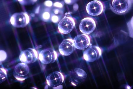 A board with color LED lamps catched just between the manufacturing cycles. Shallow depth of field for a blurred effect.
