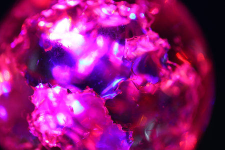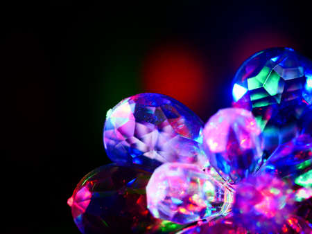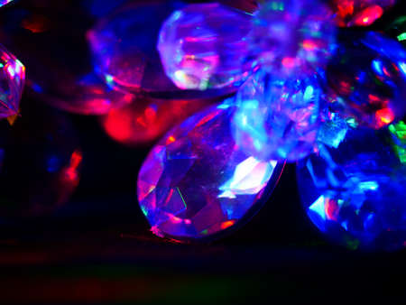 Bright colored stone crystals on the LED wall background - close-up macro photo