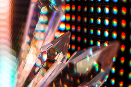 Brilliant abstract crystal formation. Sharp geometric shapes vibrant rainbow colors. Stunning digital art visualization element.
