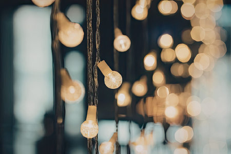 A close-up view of string lights with a warm glow, creating a cozy atmosphere.