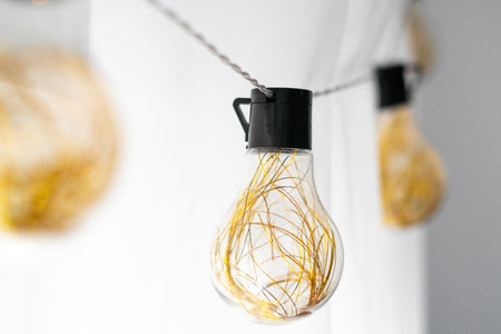 Electric garland with incandescent bulbs, yellow warm light, retro style