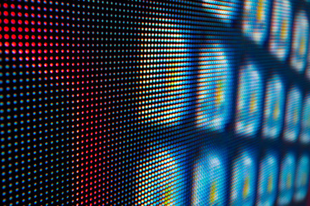 Close-up of a vibrant red LED display, showcasing intricate patterns of illuminated dots.