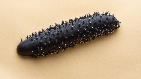 A striking black sea cucumber showcases its spiny texture against a soft background, highlighting the unique details of marine life perfect for ocean-themed projects.