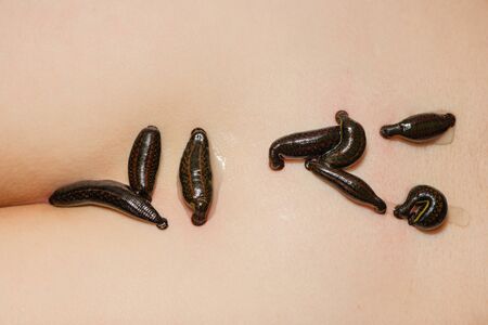 Medical bloodsuckers on the naked surface of a body